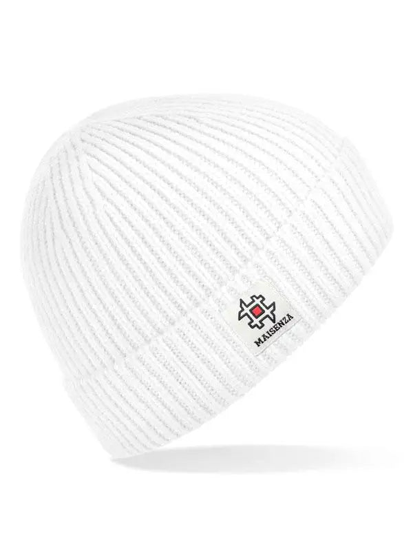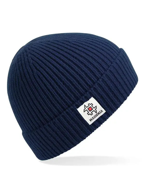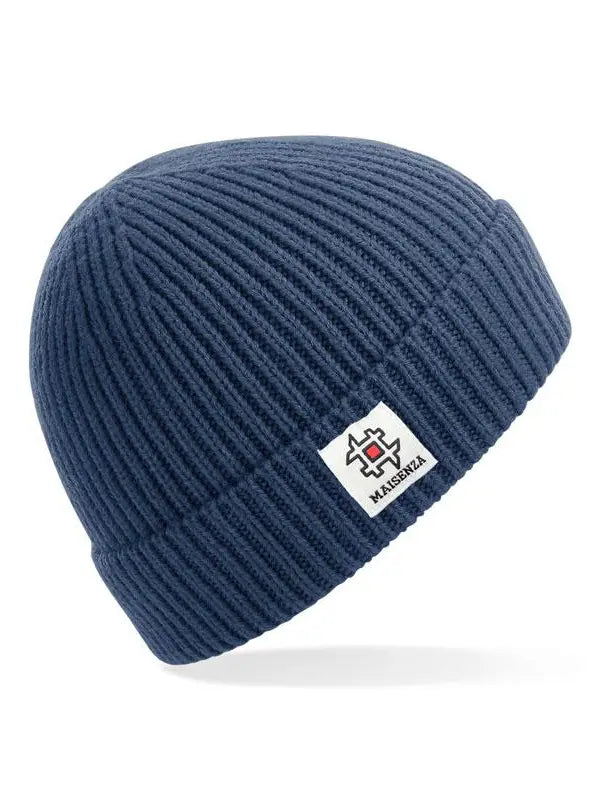Berretto in maglia a costine, design con risvolto con logo #MAISENZA cucito.